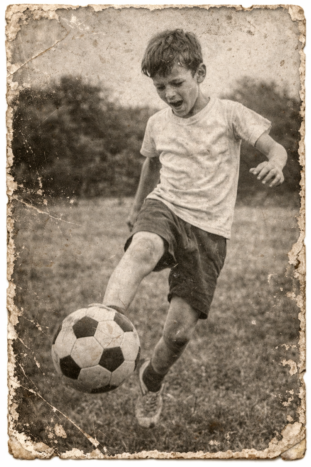 Foto desgastada, detalhes apagados.